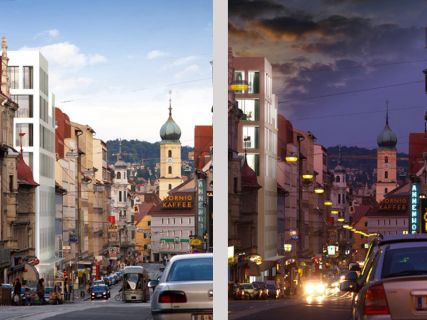 Die 1844 angelegte Annenstraße in Graz verbindet Bahnhof und Altstadt und war ehemals erste Adresse in Graz. Heute ist diese urbane Achse ein multikulturelles Entwicklungsgebiet. Daher wurde statt einfacher Sanierung zweier Objekte eine großzügige Aufstockung an dieser prominenten Stadteinfahrt vorgeschlagen. Dies stärkt die Lage durch eine städtebauliche Akzentsetzung wie auch durch einen urbanen Nutzungsmix in diesem vielfältigen Wohnumfeld. Angeboten wird neuer, moderner Wohnraum mit vielfältigem Grundrissangebot. Daneben ermöglicht diese Erweiterung eine thermische Sanierung und Barrierefreiheit durch Lifteinbau.