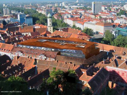Das traditionsreiche Kaufhaus Kastner & Öhler liegt inmitten der historischen Altstadt von Graz. Aufgabe eines internationalen geladenen Wettbewerbes war eine Erweiterung dieses Stammsitzes samt neuer Erschließung und Erlebnis- gastronomie am Dach des komplexen Bestandsensembles. Der Entwurf zeigt eine Renaissance des städtischen Kaufhauses mit vertikalen Hallen rund um die Rolltreppen welche Licht und Durchblicke tief ins Innere führen. Der Gastronomie- und Eventbereich inszeniert sensationelle Ausblicke zu den größten Attraktionen von Graz: Schlossberg mit Uhrturm, Kunsthaus sowie Altstadt. Als Abschluss und neue Krone des Weltkulturerbes wird eine zeitgemäße Interpretation der umliegenden Dachlandschaft aufgesetzt.