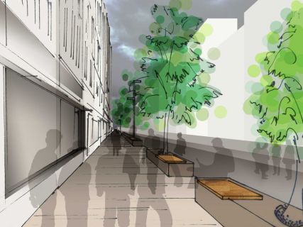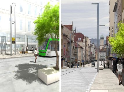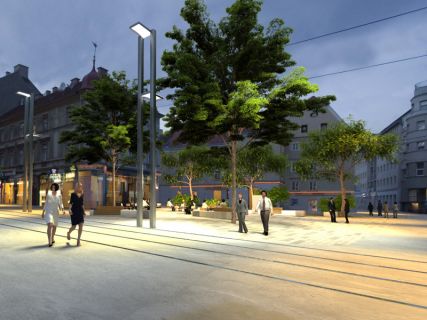 Die Annenstraße als Avenue wird von zwei Grundsatzentscheidungen geprägt. Einerseits wird der gesamte Straßenquerschnitt bis auf taktile Grenzen und die Haltestellekaps niveaugleich geplant. Das eliminiert die übliche Dominanz des MIV & ÖV gegenüber Fahrrad & Fußgängerverkehrs.