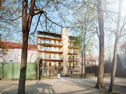 Im aufstrebenden 16. Wiener Gemeindebezirk befindet sich das Objekt mit großem Potential. Neben der Generalsanierung des Bestandes wurde eine Erweiterung mit drei neuen Dachgeschoßen durchgeführt. Bei der repräsentativen Fassade zur Hubergasse hin, wurde die Tiefe der Fensterleibung als räumliches Spiel betont und trägt gleichzeitig zur Erhöhung der Wohnqualität bei. So sind einige Fenster mit der Fassade bündig, was den Innenraum erweitert und andere Fenster sitzen ganz innen, so dass französische Balkone entstanden. Unter Verwendung von Fördermitteln der Stadt Wien wurde urbanes Wohnen mit direktem Zugang zum Huberpark in Licht, Luft und Sonne realisiert.
